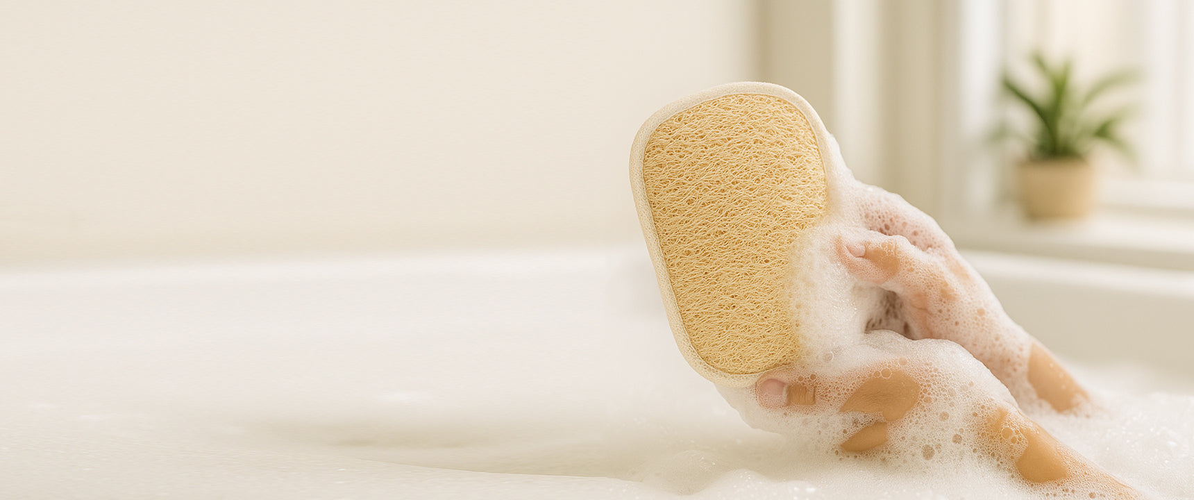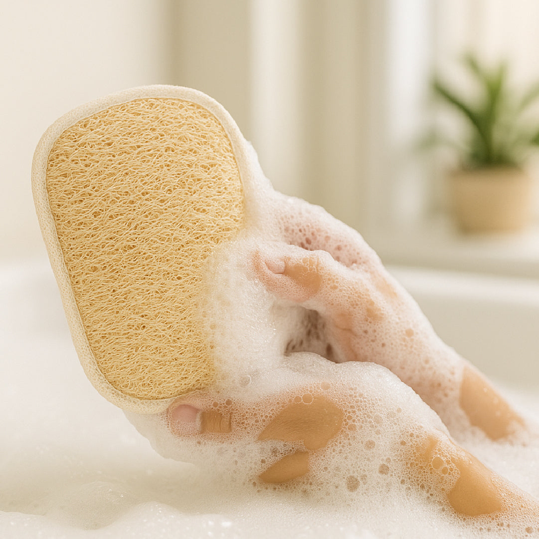 Esponjas de baño hechas con materiales naturales, suaves con la piel y resistentes al uso diario.