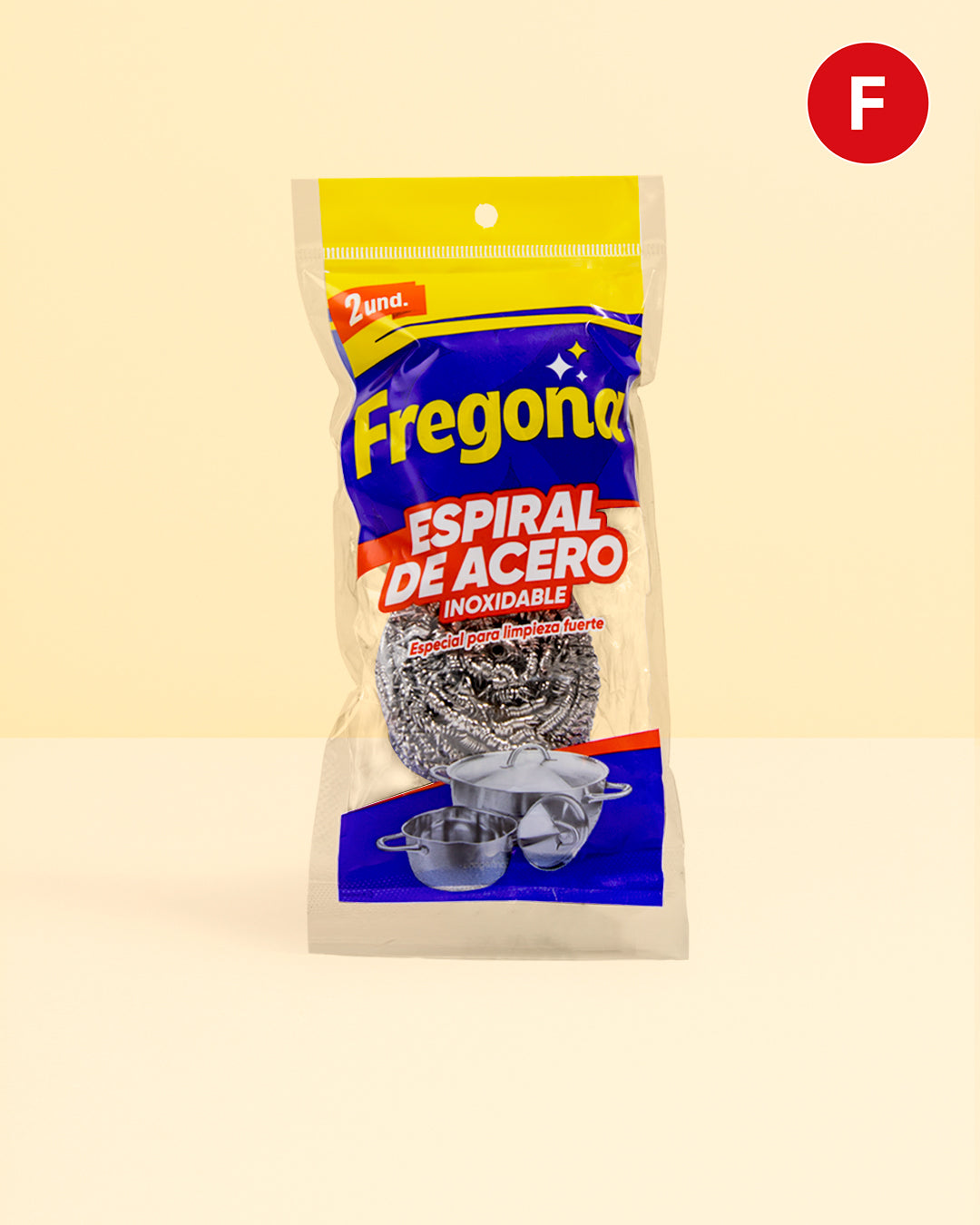 El espiral de acero Fregona x2 es perfecto para las tareas de limpieza más exigentes en la cocina. Su diseño elimina suciedad impregnada y residuos difíciles de ollas, sartenes, parrillas y utensilios metálicos sin esfuerzo.